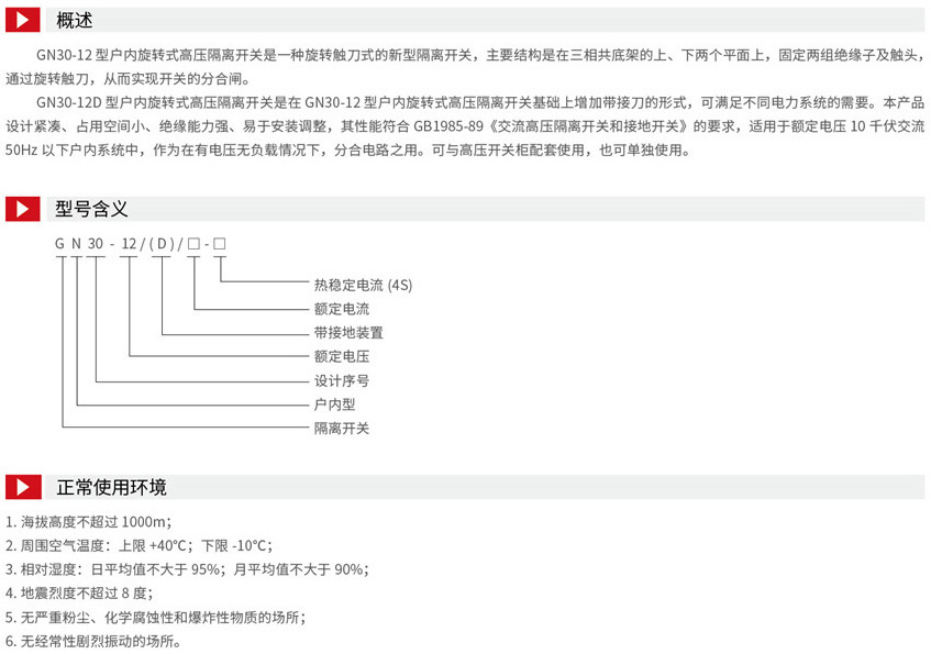 GN30-12户内旋转式高压隔离开关