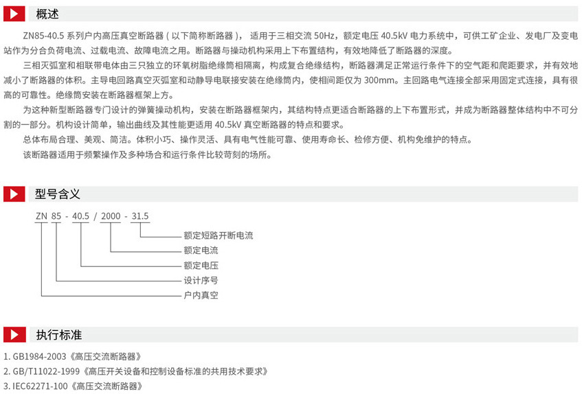 ZN85-40.5户内高压真空断路器